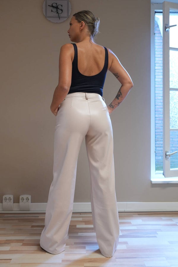 PU STRAIGHT BROEK BEIGE EXTRA LANG