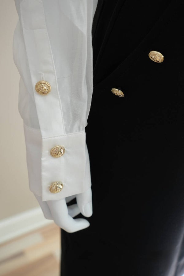 Gouden knopen bij de zakken